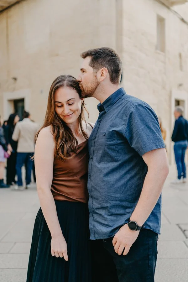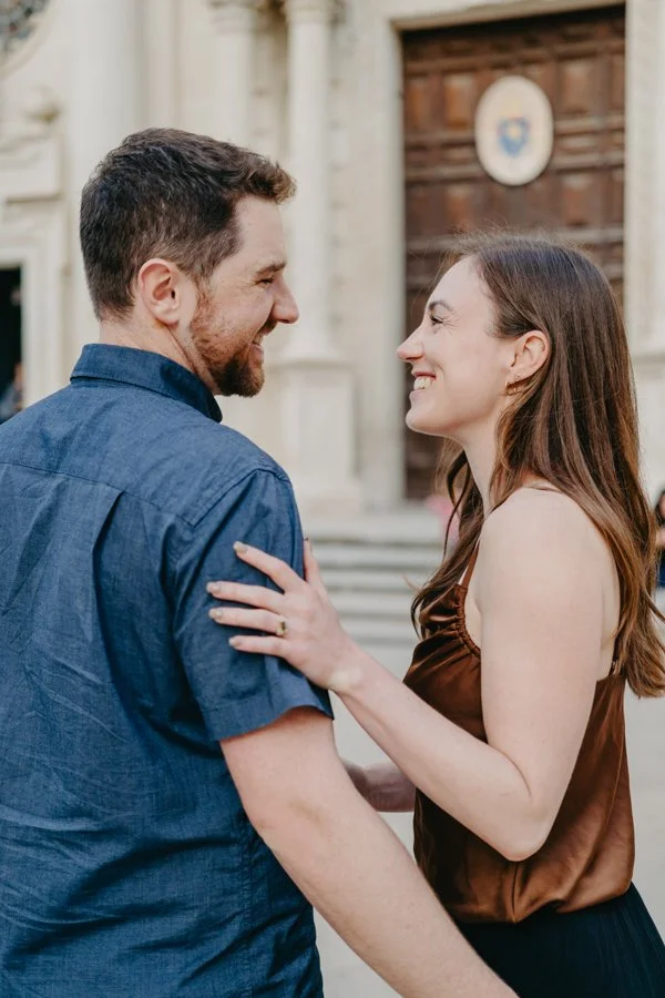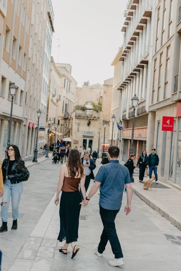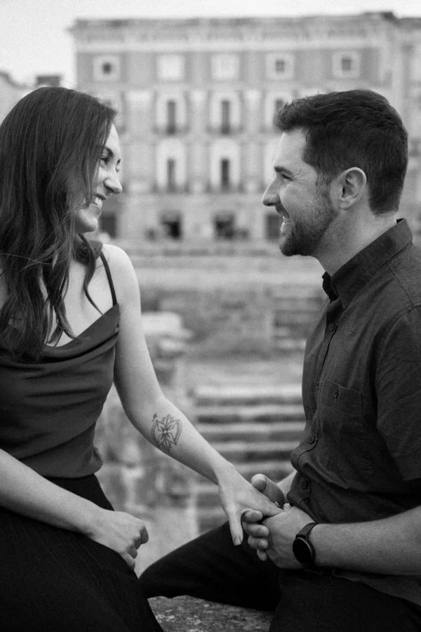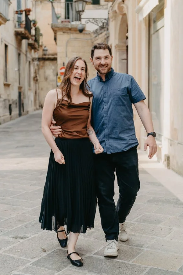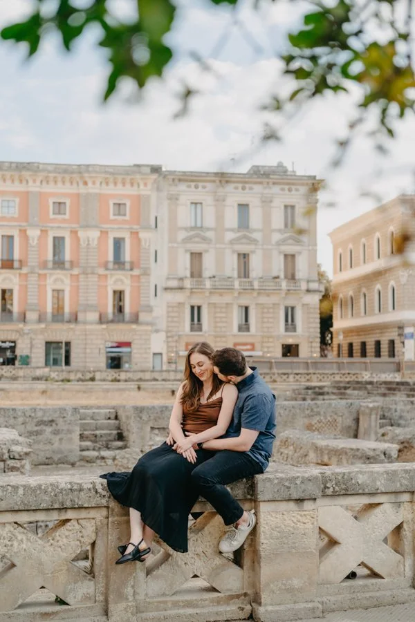 What made their story even more magical is that Mark had surprised Kaylin with a secret proposal the day before, right in the breathtaking city of Matera. Surrounded by ancient stone and timeless views, he asked her to marry him and she said yes. The next day, still glowing with joy, they joined me in Lecce for a couple photo session that felt like a natural continuation of their love story.
