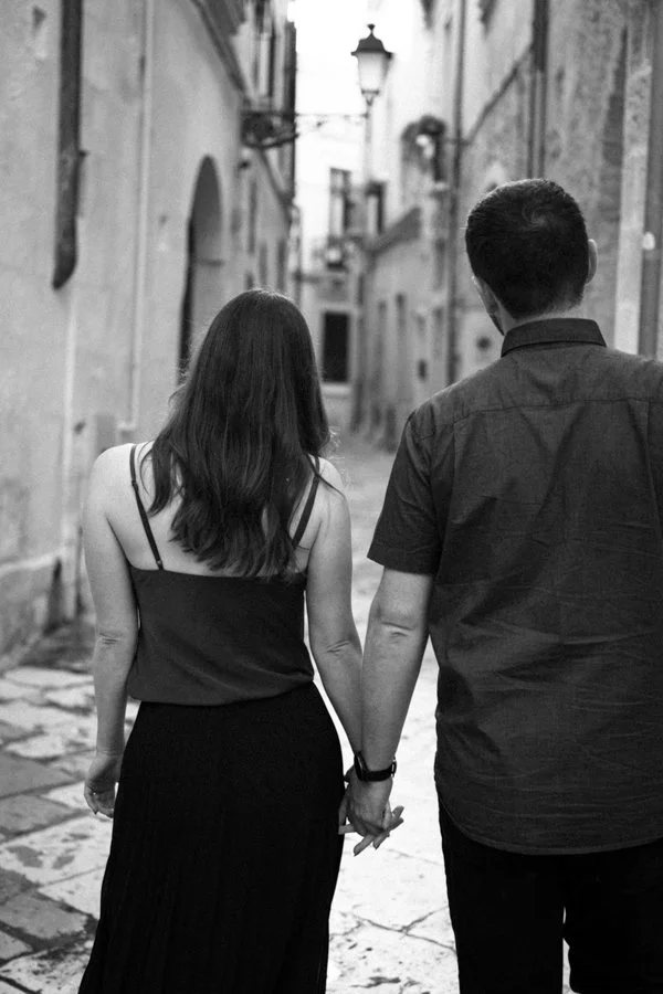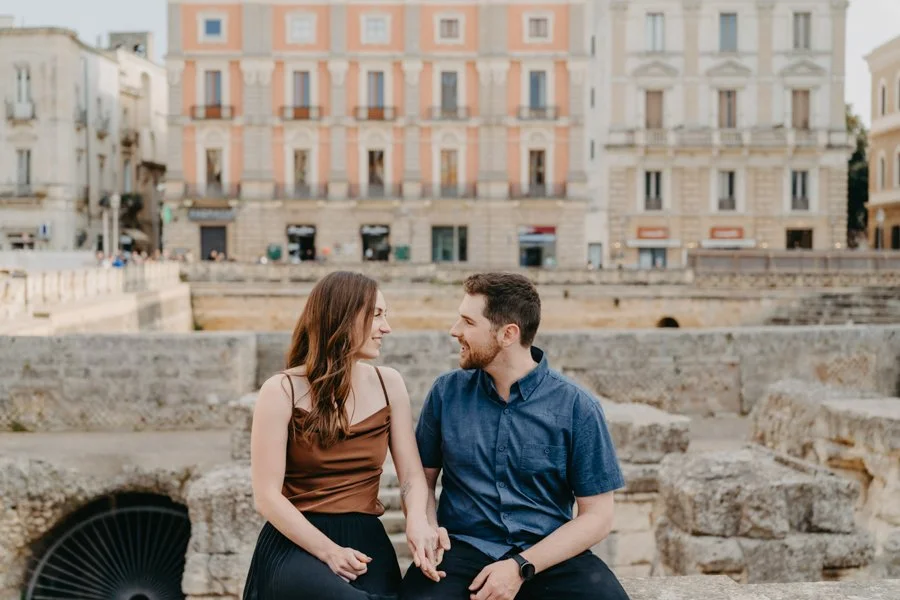 As a couple photographer based in Puglia, every session is more than just taking photos it’s about creating a genuine connection and discovering the unique story of each couple. With Mark and Kaylin, our journey began in the golden heart of Salento, surrounded by barocco leccese, art, history, and laughter.
