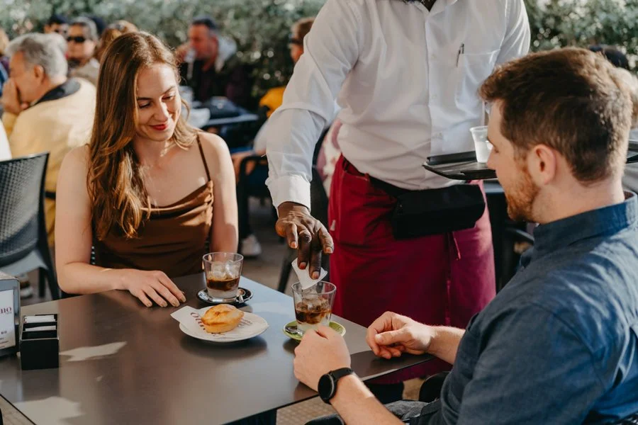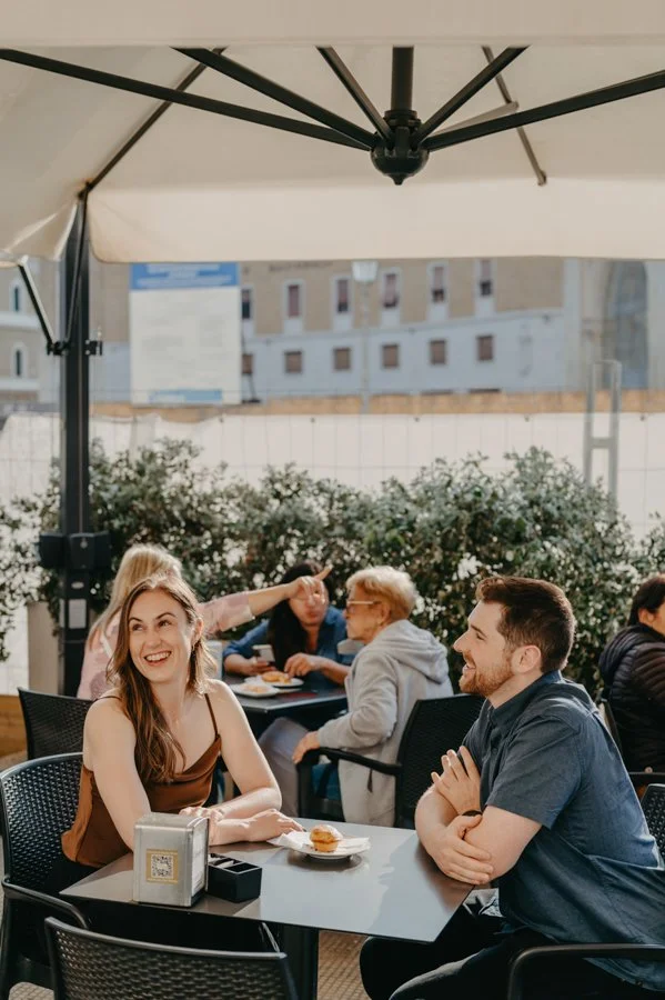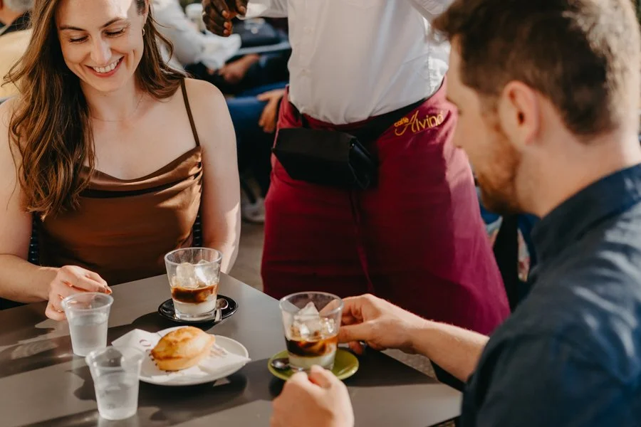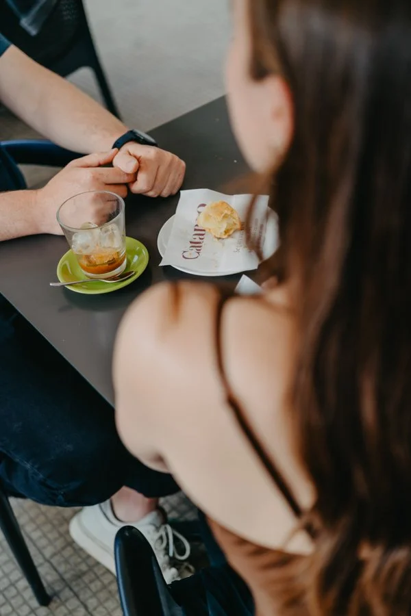 Before continuing, we took a slow, sweet break at Caffè Alvino-Catamo, a historic café loved by locals and in the middle of the main square. I suggested they try a “Caffè Leccese” our refreshing iced espresso with almond syrup. Their eyes lit up at the first sip, and then came the pasticciotto our traditional shortcrust pastry filled with soft custard. One bite and they were hooked. These little moments, full of flavor and emotion, are as much part of the memory as the photos themselves.