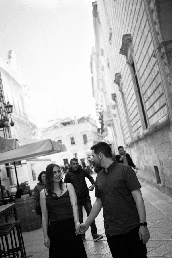 Couple photo shoot in Lecce after surprise wedding proposal in Matera